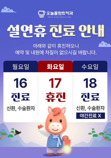 서면오늘플란트치과는 위와 같이 진료를 하오니 예약, 내원에 차질 없으시길 바랍니다?? |